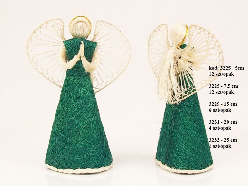 ANGELS FOR CHRYSTMAS TREES for 2022 | ABACA ANGEL 7,5 CM GREEN GOMON 12 PC/PB