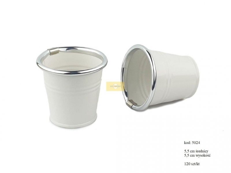 ZINK BUCKETS AND VASES | Zinc planter white color 5,5 cm D silver color ring 2 lines.