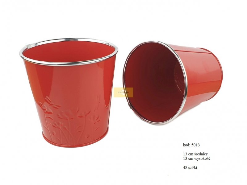 ZINK BUCKETS AND VASES | ZINC RED AND WHITE COLOR PLANTER 13 CM FLOWER/GRASS DESIGN