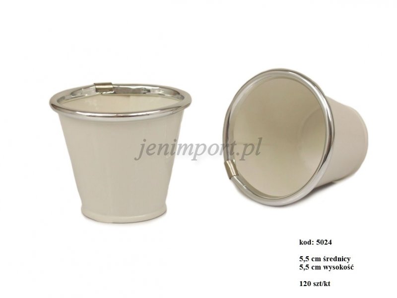 | Zinc planter white color 5,5 cm D silver color ring. |