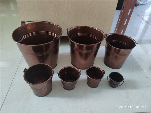 ZINK BUCKETS AND VASES | Zinc bucket 5,5 cm D copper color 2 lines