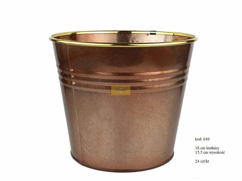 ZINK BUCKETS AND VASES | ZINC PLANTER 18 CM COPPER COLOR 3 lines GOLD COLOR RING
