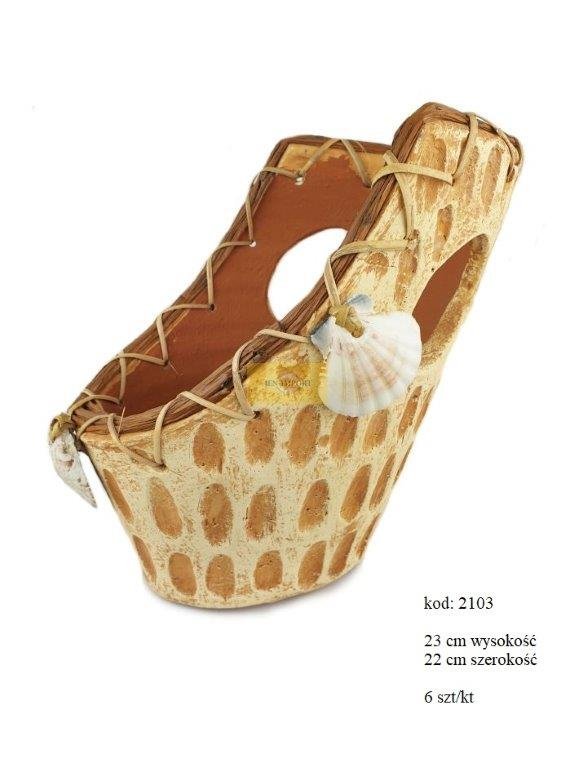 | POTTERY PLANTER RATTAN-SHELL DECOR 23 CM |