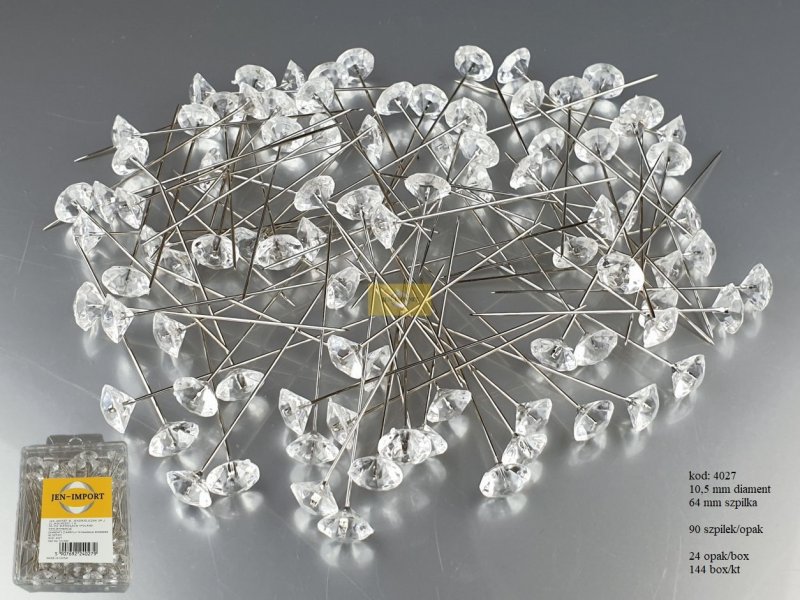 Diamond acrylic and on pin | ACRYLIC DIAMOND D-10,5 CM ON PIN 64 MM -90 PC/PB