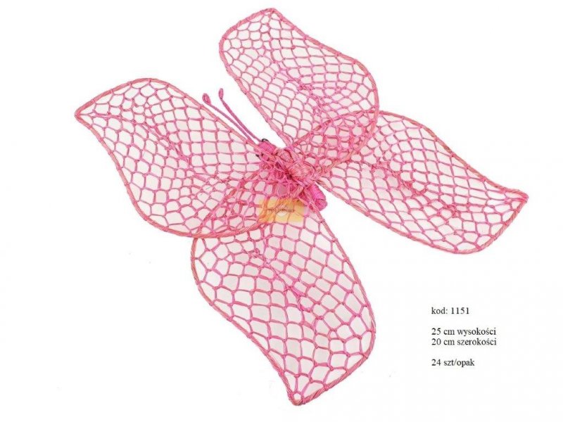Kwiaty motyle kapelusze parasolki | MOTYL ABACA RÓŻOWY 25 CM
