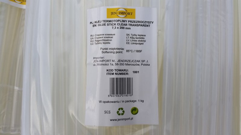 Laski klejowe pistolety i podgrzewacze do lasek klejowych | LASKI KLEJOWE 7,3 x 200 mm 1kg (120 sztuk), pakowany po kilogramie, 20 kg w kartonie