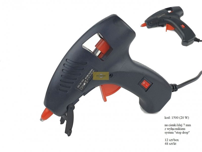 | Pistolet 20 W do lasek klejowych 7,3 mm z WYŁĄCZNIKIEM + systemem STOP DROP NOWA TECHNOLGIA | 137 mm | 28 mm | 140 mm | 27,90 (netto) 34,32 (brutto) |