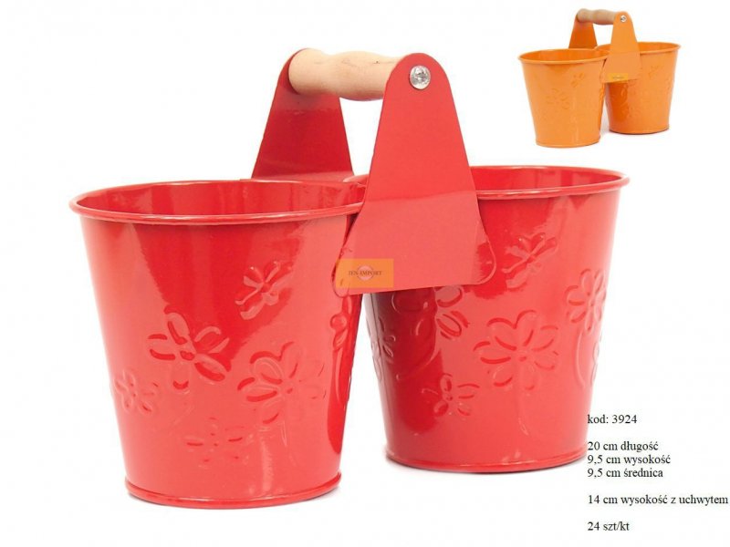 ZINK BUCKETS AND VASES | THE 2 FLOWER- POT RED COLOR 20 CM X 14,5 CM WITH HANDLE