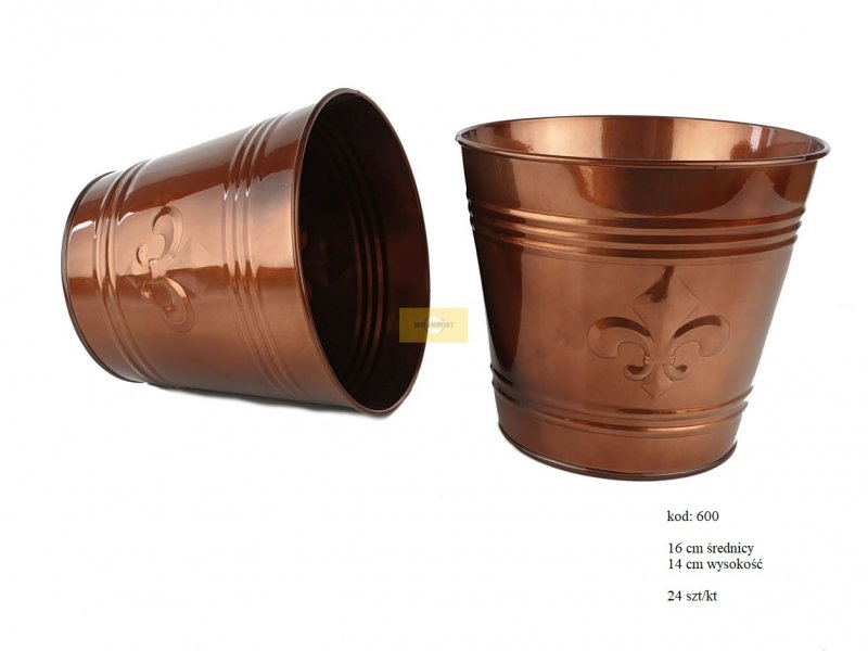 ZINK BUCKETS AND VASES | ZINC PLANTER 16 CM COPPER COLOR 2 lines LILY DESIGN