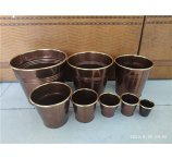 ZINK BUCKETS AND VASES | ZINC PLANTER 18 CM COPPER COLOR 3 lines GOLD COLOR RING