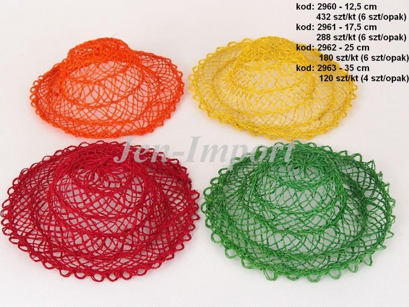 Kwiaty motyle kapelusze parasolki | KAPELUSZ ABACA 4 KOLOR 17,5 CM -6SZT/OPAK