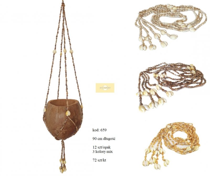 | MAKRAMY Z MUSZLI nassa na doniczkę 3 kolory mix, 90 cm długość ( bez kokosa) | 90 | 12,53 (netto) 15,41 (brutto) |