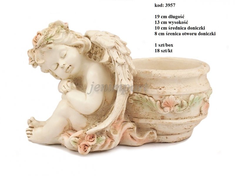 Aniołki ptaszki czaszki z tworzywa sztucznego | ANIOŁ ŚPIĄCY Z DONICZKĄ 19 CM DŁUGOŚC